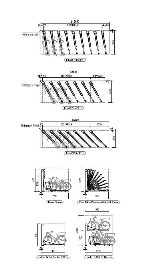 | Advantages | 1.Supported by single pillar. 2.The angle of bike rack can be freely adjusted as per the site size. |